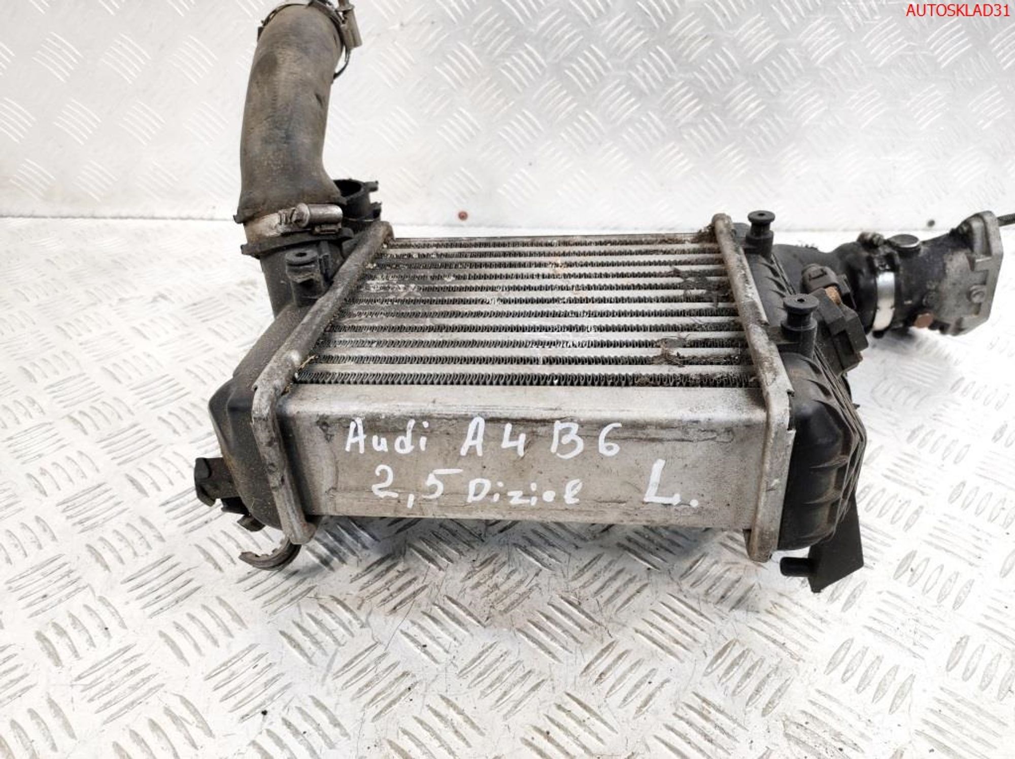 Интеркулер левый. Радиатор охлаждения воздуха наддува турбины левый. Патрубки интеркулера. Датчик абсолютного давления БУ из Германии для Audi A4 [B6] 2000-2004 год, двигатель 2,5 Дизель есть в наличии на складе в Белгороде: Белгородская область, Белгородский район, посёлок Дубовое, Заводская улица, 1АК1