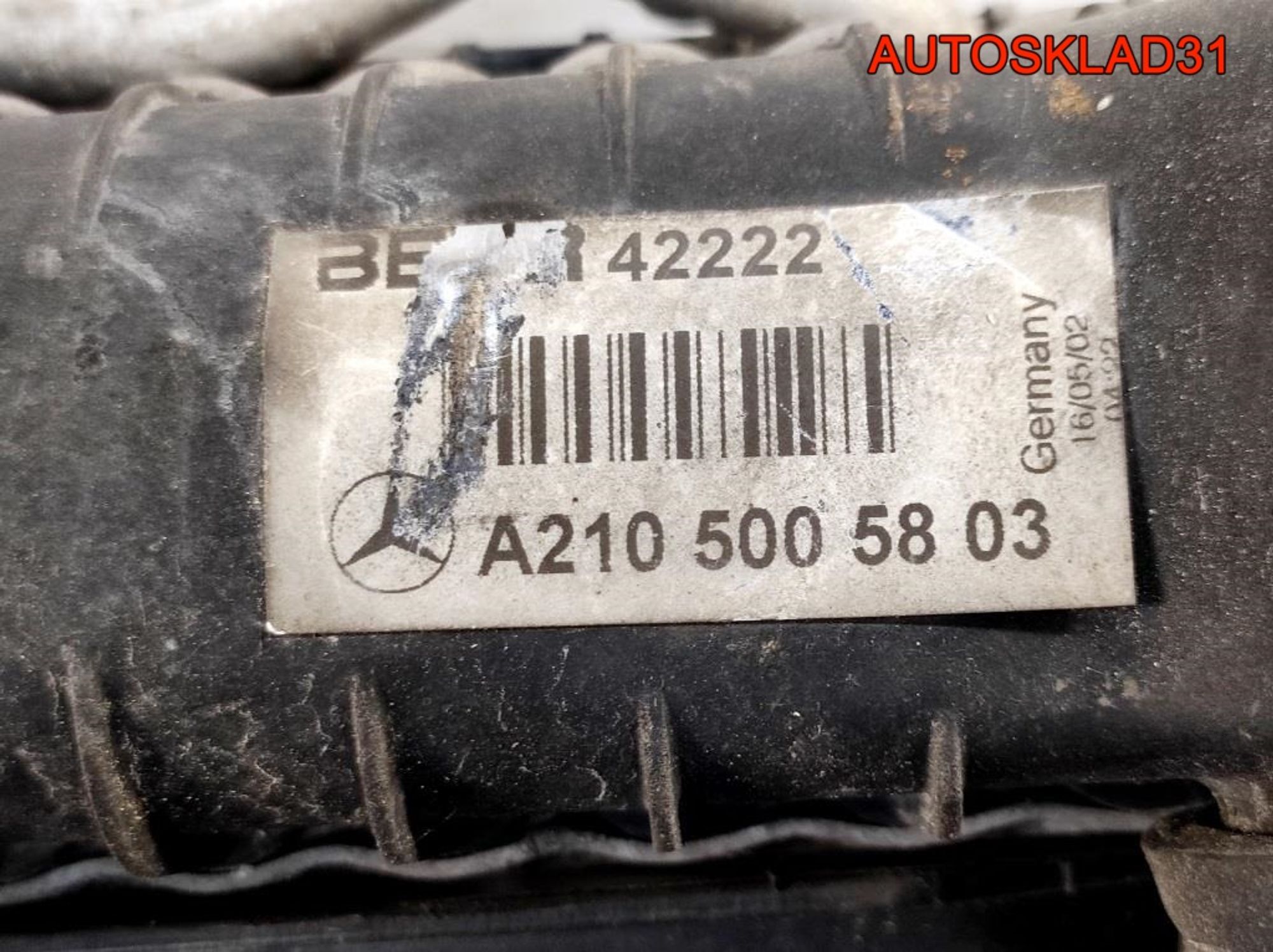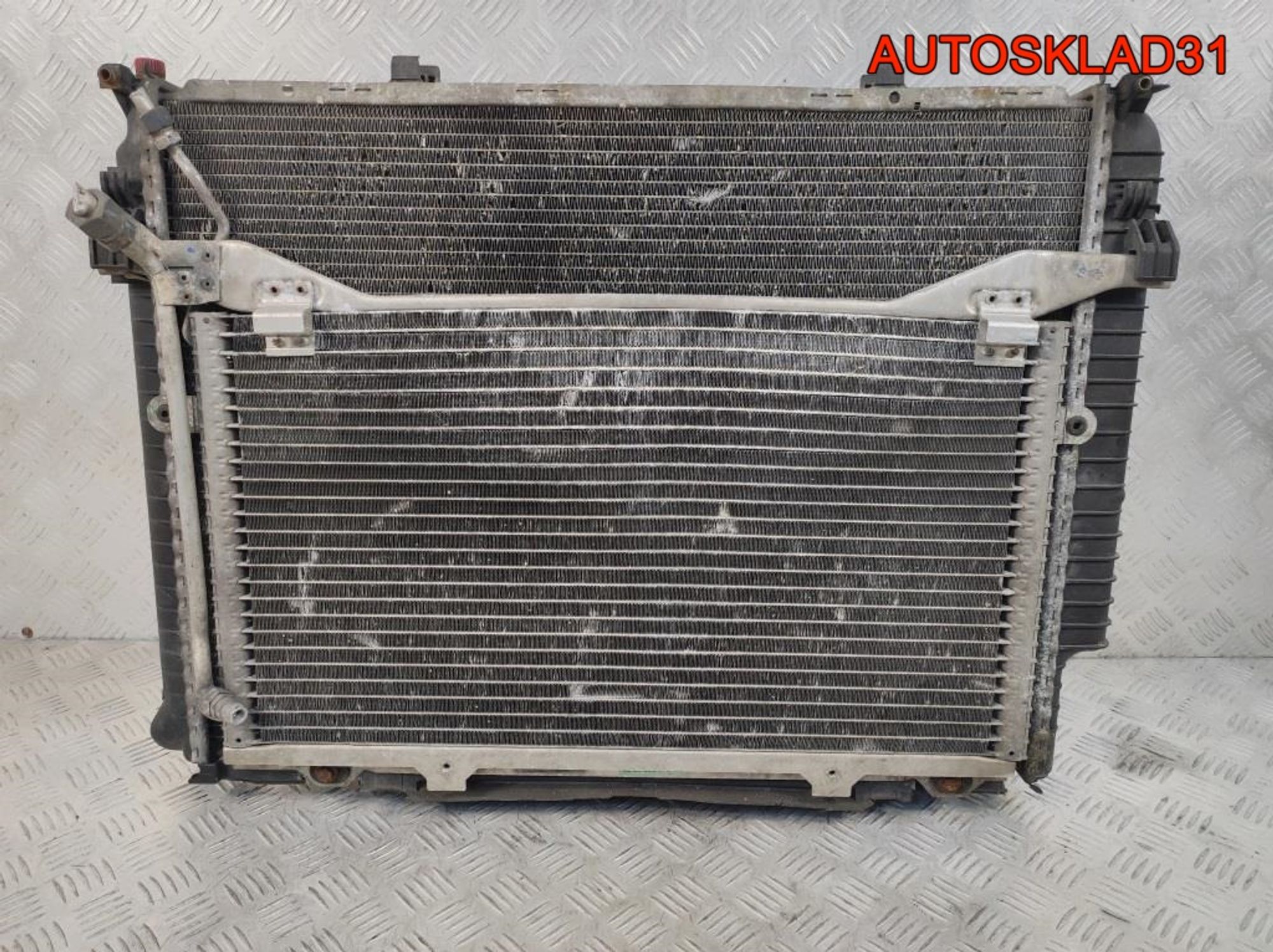Кассета радиаторов в сборе. Радиатор основной. Радиатор кондиционера. Вентилятор охлаждения. Диффузор вентилятора БУ из Европы для Mercedes Benz W210 E-Klasse 2000-2002 год, двигатель 2.7 20V CDI OM612.961 170 л/с. Дизель есть, в наличии на складе в Белгороде по адресу: Белгородский район, посёлок Дубовое, Заводская улица, 1АК1